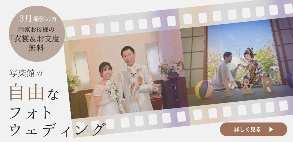写楽館は、お客様のお祝いをお手伝いする冠婚祝祭の館です。
